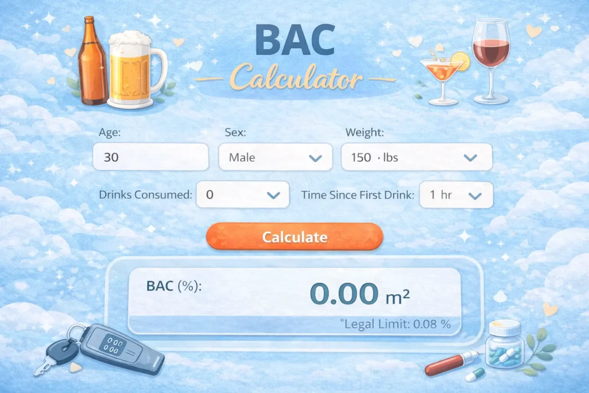 A: No. Online calculators are for educational purposes only. Factors like medication, specific metabolism, and recent food intake make it impossible for a digital tool to match a professional breathalyzer or blood test. Always choose a designated driver.